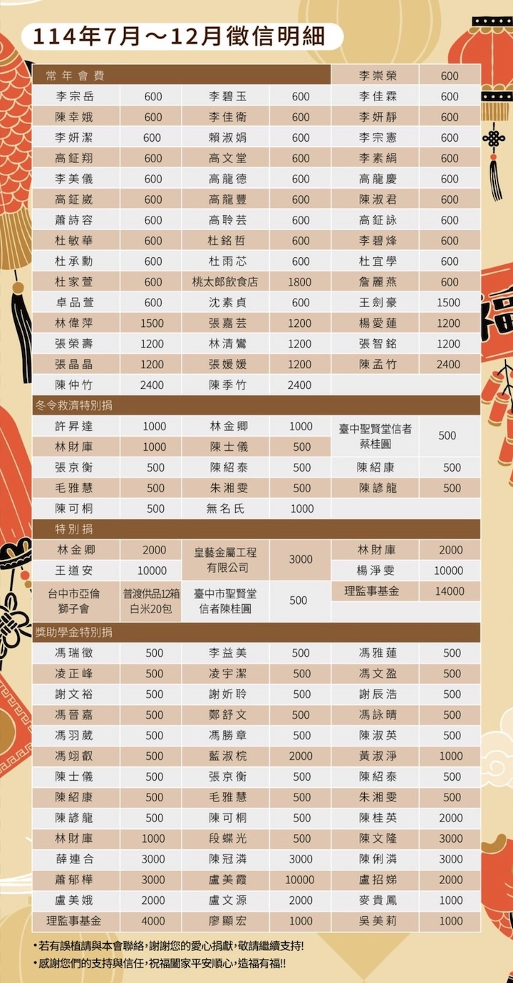 114年度捐款徵信